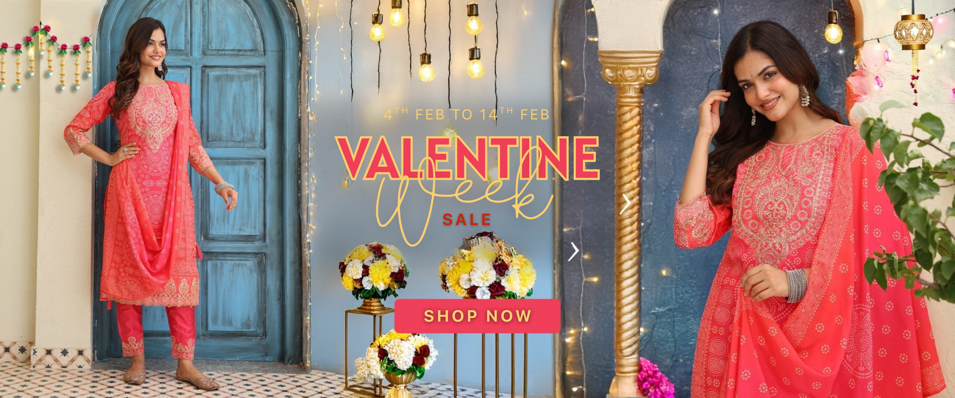 Ivory & Pink Floral Printed Kurta Set with Matching DupattaBest Gift For Her