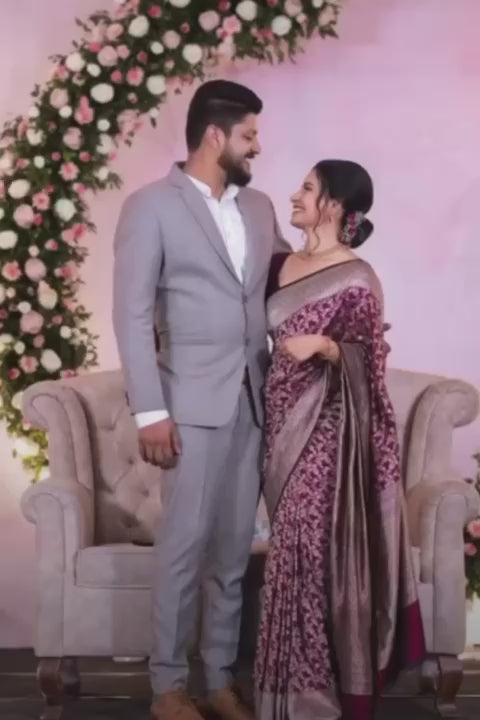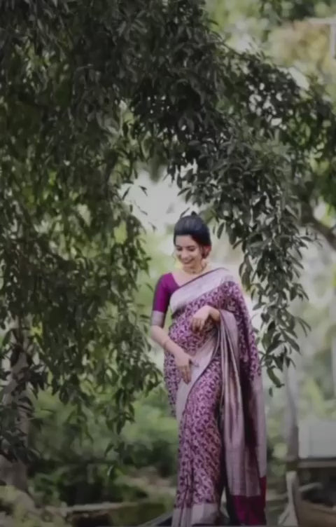 Woven, Embellished, Floral Print, Solid/Plain Kanjivaram Pure Silk, Art Silk Saree (Purple)